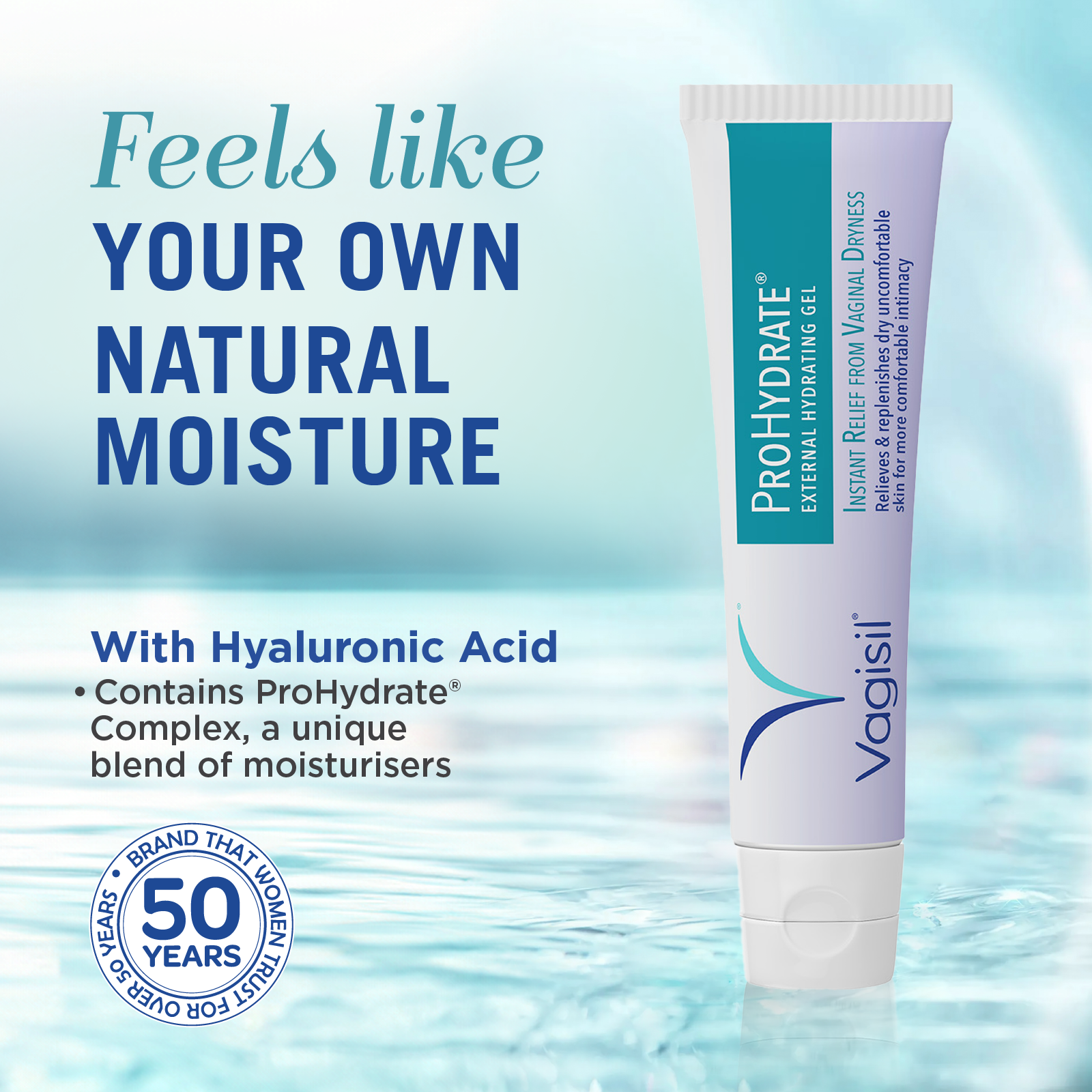 Vagisil® Prohydrate External Hydrating Gel instantly relieves vaginal dryness for more comfortable intimacy and restored confidence.